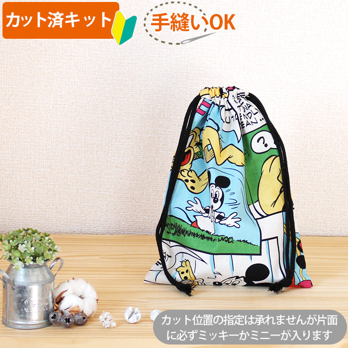 ミッキー コミック【体操服袋/ナップサック】材料セット 作り方マニュアル付き 入園入学 薄手生地+裏地[n][u] [miccomiKtAL]