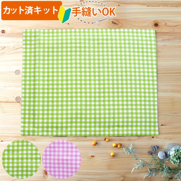 - > シンプルチェック グリーン&ピンク【ランチョンマット】手作りキット 作り方マニュアル付き 2026年度春 中厚手生地【C】