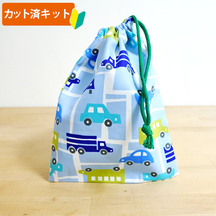 ●アウトレット サイズ変更不可●ドライブマップ ブルー【給食袋】手作りキット 作り方マニュアル付き 入園入学 手芸キット 中厚手生地 [drivemapKkBO]