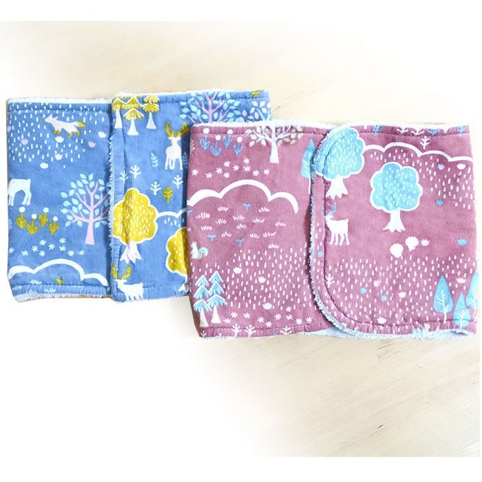北欧の森と動物 グレイッシュブルー/スモークピンク【キッズ安全ネックウォーマー】マフラー スヌード 手作りキット 作り方マニュアル付き コーデュロイ/ボア [huyumoriNWAL]