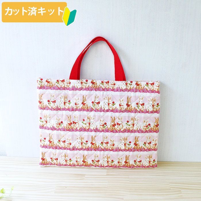 [15%OFF]★在庫限り サイズ変更不可★ウサギとレース【レッスンバッグ】 手作りキット 作り方マニュアル付き 入園入学 手芸キット[n]