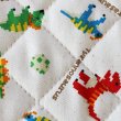 レゴみたいな、ゲームみたいなピクセルドットで描かれた可愛い恐竜柄の生地です。