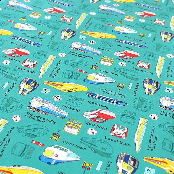 電車好きの男の子たちにきっと気に入っていただける素敵な生地ですよ。
