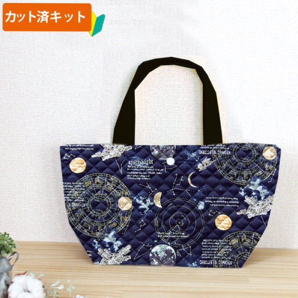 宇宙ステーション ネイビー【ランチバッグ】手作りキット 作り方マニュアル付き 入園入学 手芸キット [galaxynvQluAL]