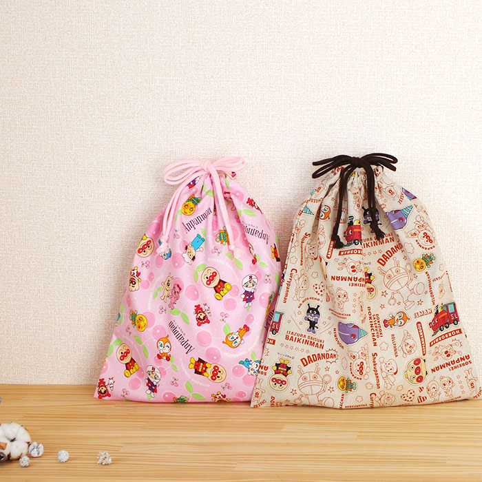 - > ●アウトレット サイズ変更不可●アンパンマン ガールズ チェリーピンク【体操服袋/ナップサック】 中厚手生地 材料セット 作り方マニュアル付き