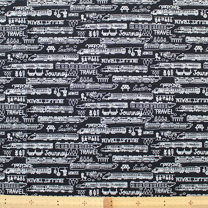 白黒で描かれたオシャレな電車柄生地の登場です!