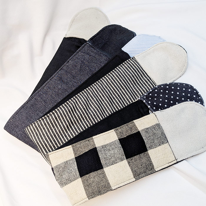 ピタッと胸の前でくっつける自着生地については、薄いグレーや黒を利用します(色柄はおまかせになります)。