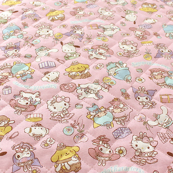 やさしいピンクに、サンリオキャラクターたちがぎゅっと詰まった夢かわ生地。