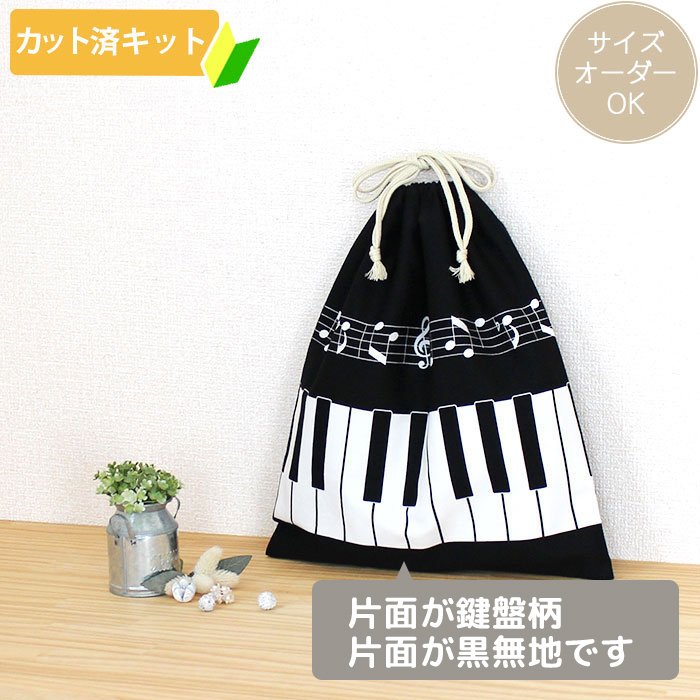 ピアノと音符【体操服袋/ナップサック】 中厚手生地 手作りキット 作り方マニュアル付き 入園入学 手芸キット[n]