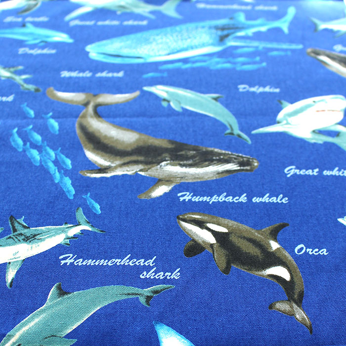 深い海に住む鮫や鯨がいっぱい描かれた素敵な生地