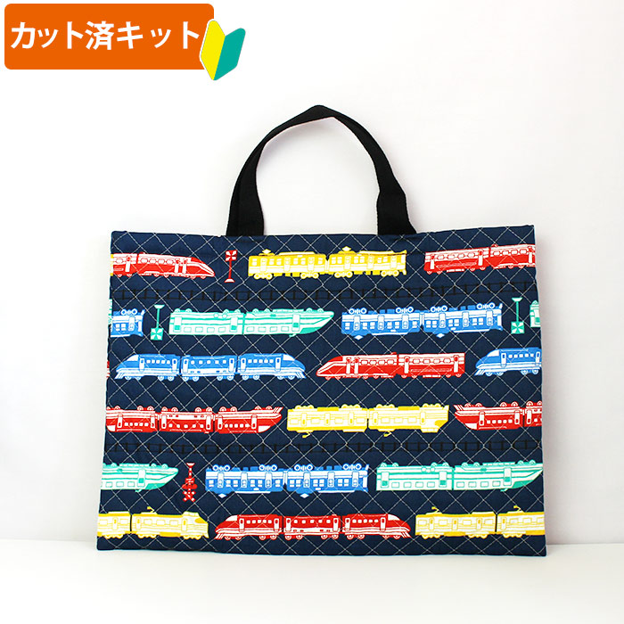 ●アウトレット サイズ変更不可●カラフルトレイン ネイビー【レッスンバッグ】キルティング生地 手作りキット 作り方マニュアル付き 入園入学 手芸キット[s] [ou_coltrainQlBO]