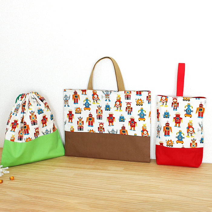 ロボロボロボット◎底布3枚付【入園・入学 3点セット】 手作りキット 作り方マニュアル付き 入園入学 手芸キット[n][s]