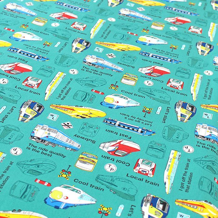 電車好きの男の子たちにきっと気に入っていただける素敵な生地ですよ。