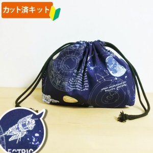 宇宙ステーション ネイビー【お弁当袋】手作りキット 作り方マニュアル付き 入園入学 2026年度春 中厚手生地