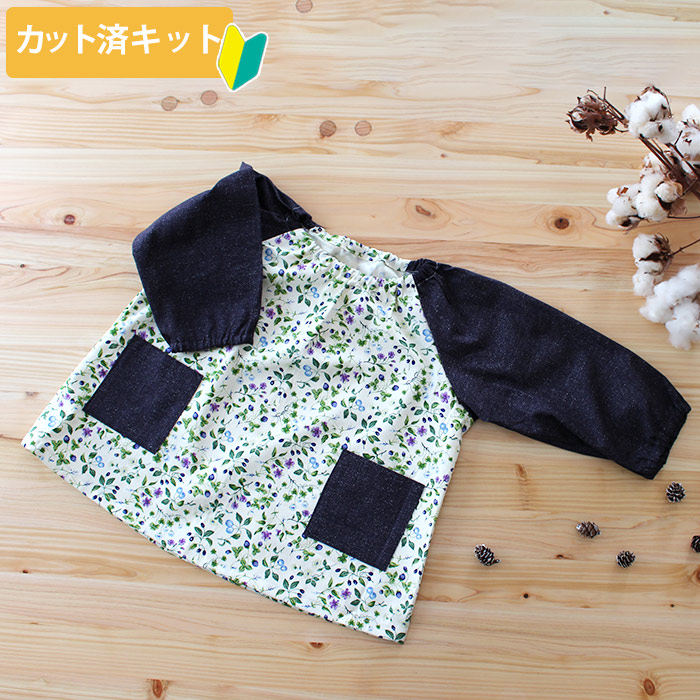 小さな青いベリー【スモック】 手作りキット 作り方マニュアル付き 中厚手生地