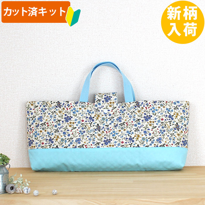 ミニフラワー ブルー◎底布付【ピアニカバッグ】 手作りキット 作り方マニュアル付き 入園入学 手芸キット[s] [miniflowerbQp]