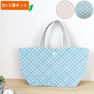 ニュアンスカラーのドット ドットピンク/ドットブルー【ランチバッグ】 手作りキット 作り方マニュアル付き 入園入学 手芸キット [nuancedQlu]