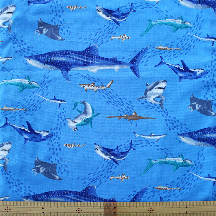 海の生き物柄 海獣柄生地 サメ生地 鮫柄生地 エイ柄 マンタ柄 おさかな柄生地 お魚柄生地