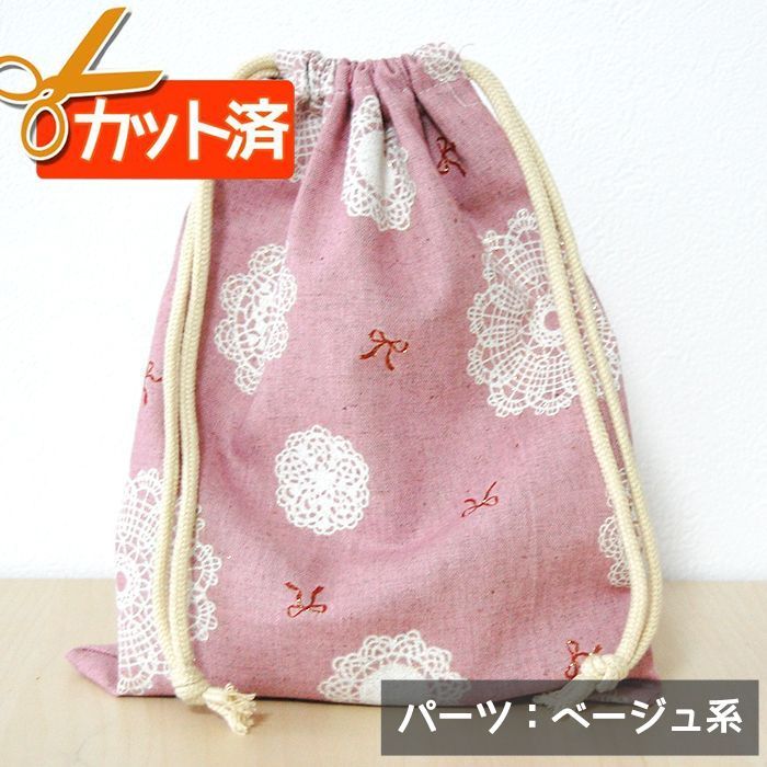 ●アウトレット サイズ変更不可●リボン&ドイリー ピンク【給食袋】手作りキット 作り方マニュアル付き 入園入学 手芸キット 中厚手生地 [ou_doilypKkGI]