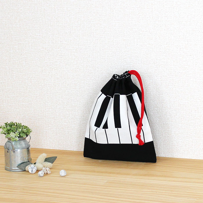 ピアノと音符【コップ袋】中厚手生地 手作りキット 作り方マニュアル付き 入園入学 手芸キット[n]