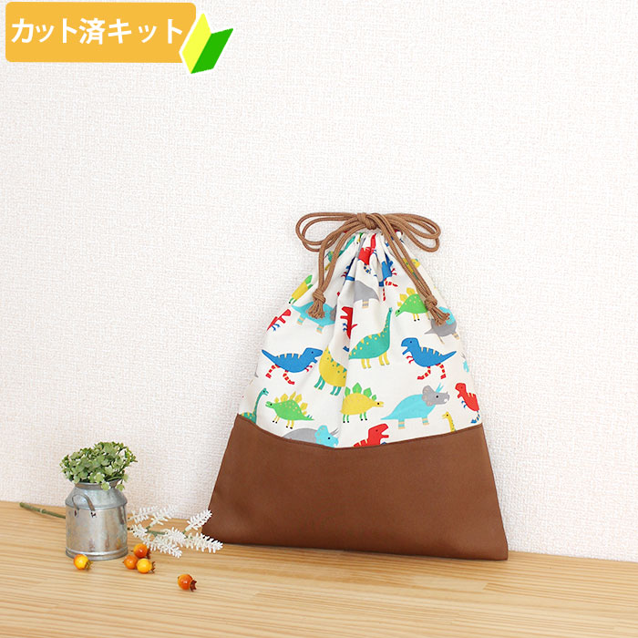 カラフルダイナソー◎底布3枚付【入園・入学 5点セット】 手作りキット 作り方マニュアル付き 入園入学 手芸キット[n][s] [colorfulkyoSet]