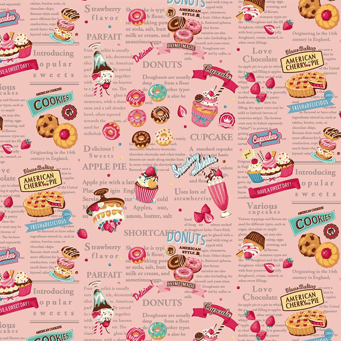 sweets柄 スイーツ柄 ケーキ カップケーキ 女の子 可愛い生地 おしゃれ生地 パフェ クッキー